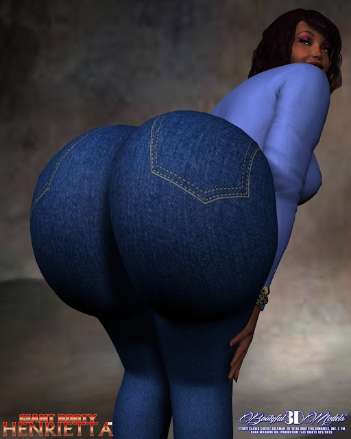 And Giant Booty Henrietta is back at it again. for this photo shoot we got her all dressed up some Sexy Dark Blue Denim Skinny Jeans that look so Incredible on her. Giving it a few good smacks, which Henrietta says she enjoys very much that she even told us she would go on and on. If you think the pictures look good just wait until you see the hottest piece of big round booty butt cheeks on our Official Bootyful3DModels™ Roster . You won't regret it.