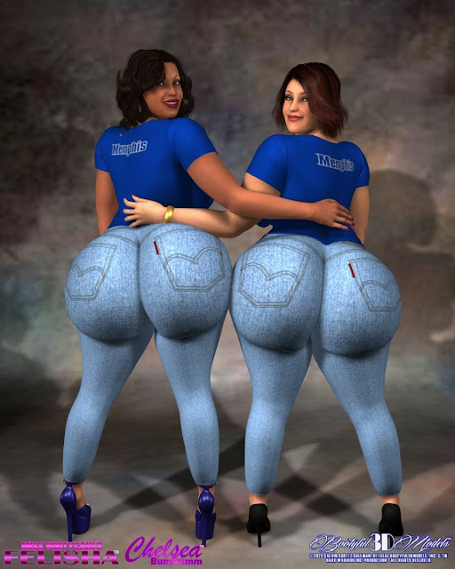 This could get alot interesting! For this shoot, They picked out these Sexy Light Blue Denim Jeans and Memphis Tigers T-Shirts. And I've got to say that they look incredible. You have no idea how horny I get when working with Miss BootyCakes Felicia and Chelsea BumBumm. We've got a great photo set for you with some hot poses of The Double Booty Twins and their delicious rumps!