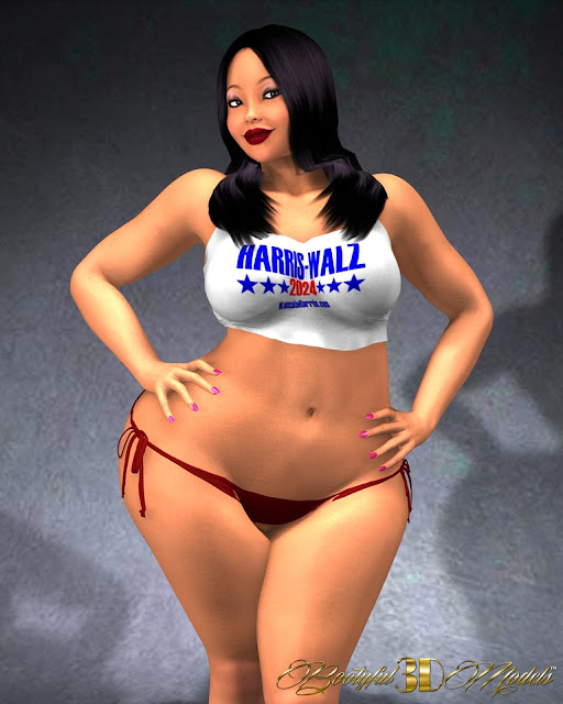 Miranda Applecheeks earns her first appearance on latest edition of Official Bootyful3DModels™ Magazine 67th Issue of the month of August 2024 for the very first time in the history of our Official Bootyful3DModels™ Roster sporting out sporting out her beautiful bright ruby red bikini and tank top that look so sexy on her, and we want to say congrats to Miranda on her great endorsement and support for Kamala Harris for US President.